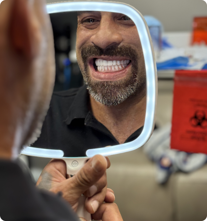 Full Arch treatment, often called All-on-4 or All-on-X, replaces an entire upper or lower set of missing or failing teeth using four to six dental implants that permanently secure a new set of natural-looking teeth. The result is a confident smile that looks, feels, and functions like real teeth, often completed in just one day.